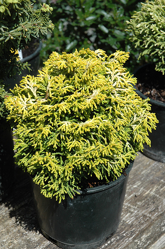 Butterball Hinoki Falsecypress makes a fine choice for the outdoor landscape, but it is also well-suited for use in outdoor pots and containers. It can be used either as 'filler' or as a 'thriller' in the 'spiller-thriller-filler' container combination, depending on the height and form of the other plants used in the container planting. It is even sizeable enough that it can be grown alone in a suitable container. Note that when grown in a container, it may not perform exactly as indicated on the tag - this is to be expected. Also note that when growing plants in outdoor containers and baskets, they may require more frequent waterings than they would in the yard or garden.
