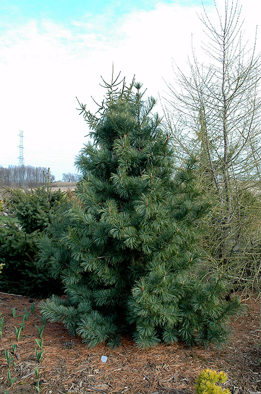 Silveray Korean Pine is a dense evergreen tree with a strong central leader and a narrowly upright and columnar growth habit. Its average texture blends into the landscape, but can be balanced by one or two finer or coarser trees or shrubs for an effective composition.