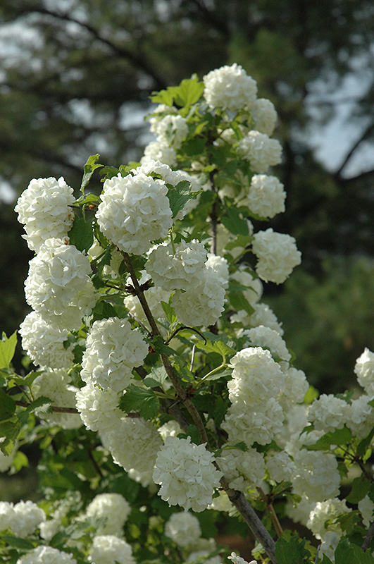 A popular feature shrub with rounded clusters of snowball-shaped flowers in spring, very showy, and good fall color, does not produce fruit; upright and spreading, will grow quite large; great as a solitary accent, flowers best in full sun