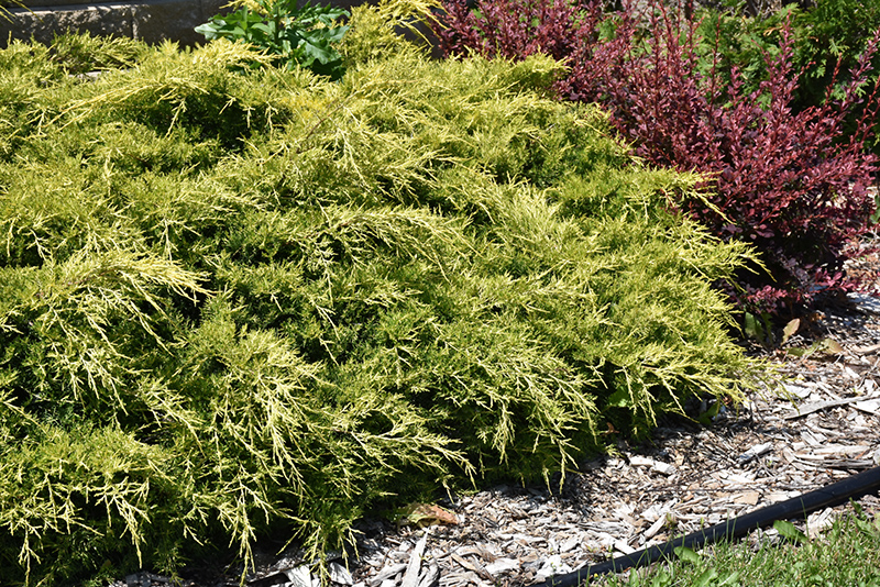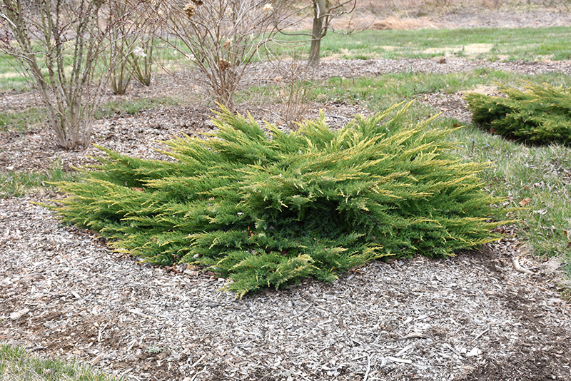 Gold Lace Juniper is a dwarf conifer which is primarily valued in the garden for its broadly spreading habit of growth. It has attractive gold evergreen foliage which emerges lemon yellow in spring. The scale-like sprays of foliage are highly ornamental and turn chartreuse in the fall, which persists throughout the winter.