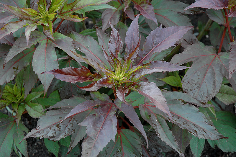 This bold garden perennial features very showy deep red flowers; attractive, glossy, deep violet-purple leaves that mature to green; ideal for the mixed garden border or in mass; do not allow to dry to wilting point