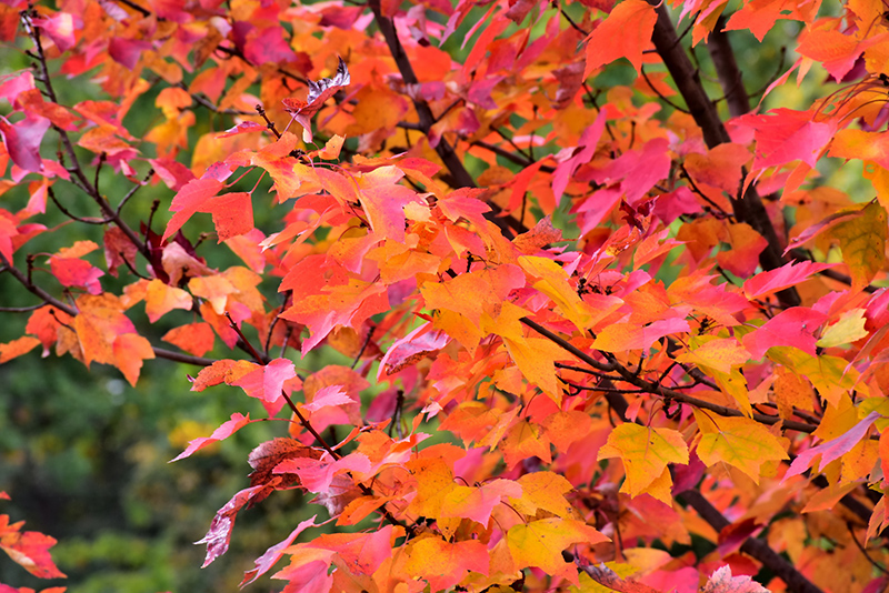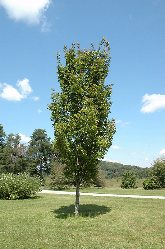 A choice shade tree for smaller areas, with a narrowly upright habit of growth, that relaxes with age; blazing red fall color with orange highlights, showy red flowers line the bare branches in spring; intolerant of alkaline soils; improved hardiness