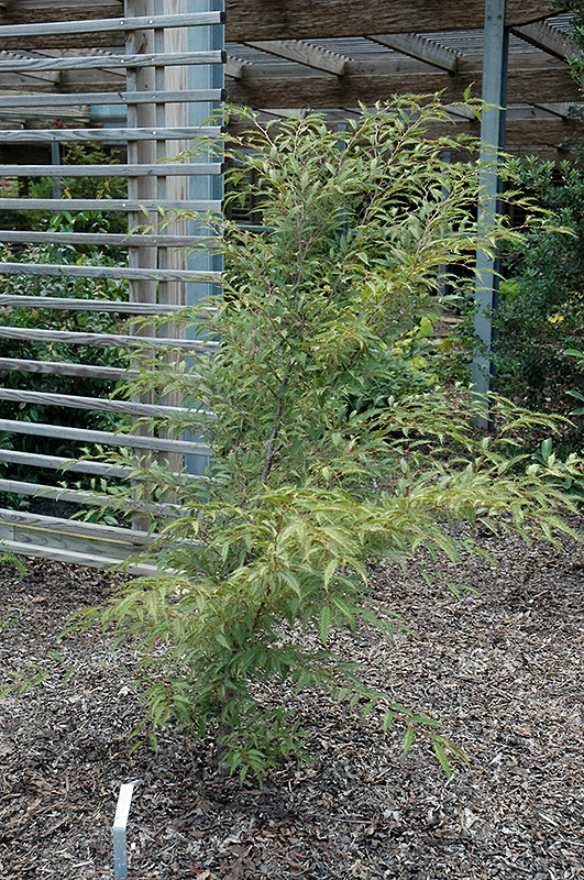 A fine dwarf variety remotely related to the birch with finely cut, narrow foliage with a silvery cast; a distinctive and uncommon small tree for home gardens or containers