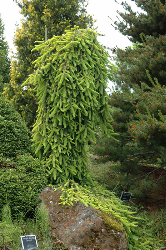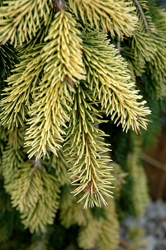 Gold Drift Norway Spruce is a dwarf conifer which is primarily valued in the landscape or garden for its highly ornamental weeping form. It has gold-variegated dark green foliage which emerges yellow in spring. The needles remain dark green throughout the winter.