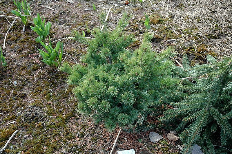 Nellie D Japanese White Pine will grow to be about 24 inches tall at maturity, with a spread of 24 inches. It tends to fill out right to the ground and therefore doesn't necessarily require facer plants in front. It grows at a slow rate, and under ideal conditions can be expected to live for 60 years or more.