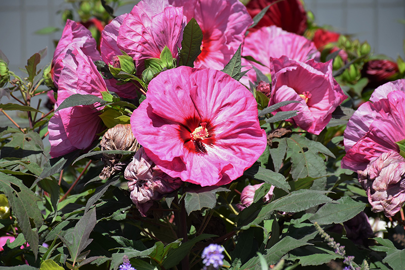 This bold garden perennial features very large and showy mauve-lavender flowers all along the branches, not just the ends; ideal for the mixed garden border or in mass plantings; beware of Japanese Beetles; do not allow to dry to wilting point