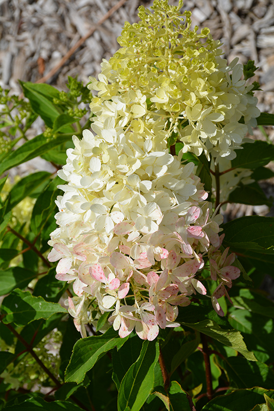 A beautiful long-season bloomer featuring large cones of white flowers which transition to hot pink from the bottom up; strong stems hold the flowers upright, great for cutting; early blooming