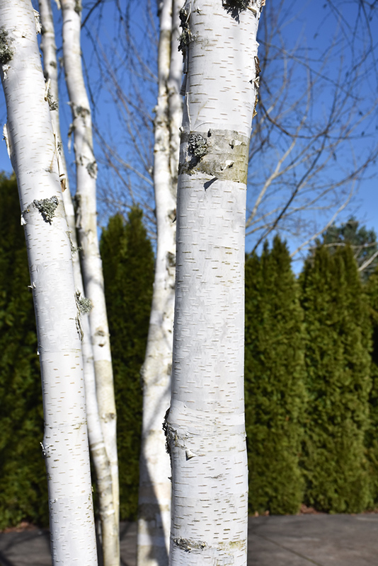 Whitebark Himalayan Birch (clump) is primarily valued in the landscape for its ornamental upright and spreading habit of growth. It has dark green deciduous foliage. The pointy leaves turn an outstanding yellow in the fall. The smooth white bark is extremely showy and adds significant winter interest.