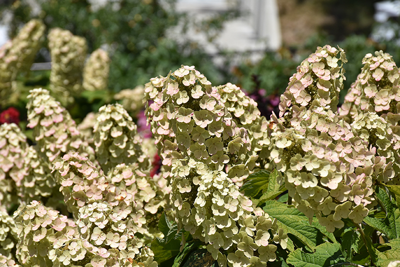 A choice compact garden or massing shrub featuring impressively large, full panicles of pure white flowers that mature to pink; wine red fall foliage color; blooms on old wood; a great selection for smaller gardens