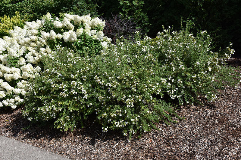 Happy Face® White Potentilla will grow to be about 3 feet tall at maturity, with a spread of 3 feet. It tends to fill out right to the ground and therefore doesn't necessarily require facer plants in front. It grows at a slow rate, and under ideal conditions can be expected to live for approximately 30 years.