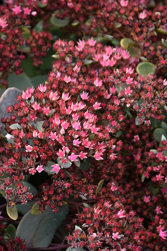 A compact, mounded stonecrop with large clusters of salmon pink flowers held atop blue-green succulent foliage; a drought-tolerant perennial that does best in poor soils; a colorful groundcover or feature in containers or rock gardens
