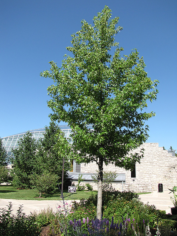 Sweet Gum has forest green deciduous foliage on a tree with an oval habit of growth. The lobed palmate leaves turn an outstanding crimson in the fall. However, the fruit can be messy in the landscape and may require occasional clean-up.