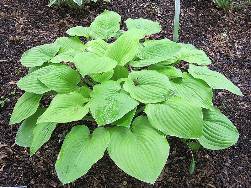 Quick growing and vigorous, this variety produces dense mounds of thick heart shaped leaves; emerging chartreuse and progressing to shades of yellow depending on sun exposure; pale lavender-white flowers rise above of arching scapes in midsummer