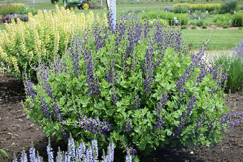 Decadence® Sparkling Sapphires False Indigo is an herbaceous perennial with an upright spreading habit of growth. Its medium texture blends into the garden, but can always be balanced by a couple of finer or coarser plants for an effective composition.