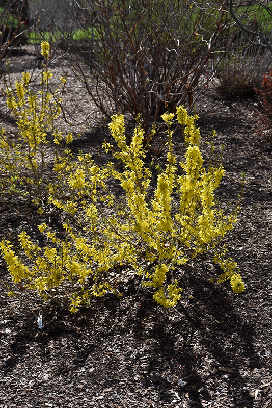 Show Off® Sugar Baby® Forsythia is blanketed in stunning gold bell-shaped flowers with yellow overtones along the branches from early to late spring before the leaves. The flowers are excellent for cutting. It has dark green deciduous foliage. The glossy pointy leaves do not develop any appreciable fall color. The brick red stems can be quite attractive.