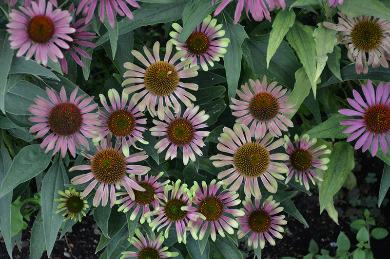 This stunning echinacea produces large flowers that are lilac-pink with yellow-green tips and coppery centers; a perfect choice for planting in groups, along border edges, or in containers; great for flower arrangements; attracts pollinators