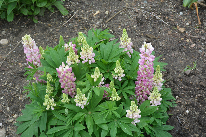 Mini Gallery™ Pink Bicolor Lupine will grow to be about 12 inches tall at maturity extending to 16 inches tall with the flowers, with a spread of 10 inches. When grown in masses or used as a bedding plant, individual plants should be spaced approximately 8 inches apart. It grows at a fast rate, and under ideal conditions can be expected to live for approximately 3 years. As an herbaceous perennial, this plant will usually die back to the crown each winter, and will regrow from the base each spring. Be careful not to disturb the crown in late winter when it may not be readily seen!