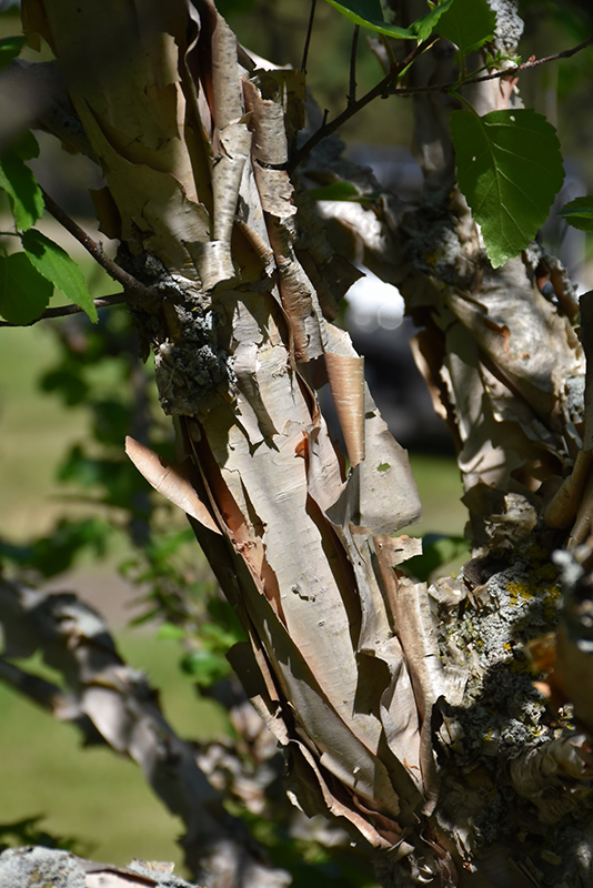 Cinnamon Curls® Dwarf Korean Birch has light green deciduous foliage on a tree with a round habit of growth. The pointy leaves turn outstanding shades of yellow and in the fall. The peeling white bark is extremely showy and adds significant winter interest.