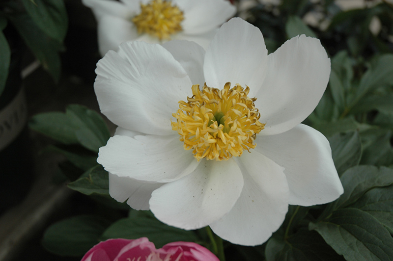 Jan Van Leeuwen Peony features bold lightly-scented white cup-shaped flowers with yellow centers at the ends of the stems from late spring to early summer. The flowers are excellent for cutting. Its compound leaves remain green in color throughout the season.