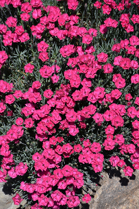 Paint The Town Red Pinks is smothered in stunning fragrant red frilly flowers with fuchsia streaks at the ends of the stems from early summer to early fall. The flowers are excellent for cutting. Its attractive narrow leaves remain powder blue in color with hints of grayish green throughout the year.