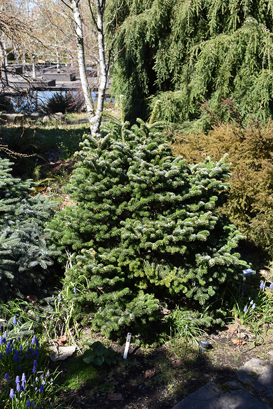 Hunnewell Nordmann Fir will grow to be about 3 feet tall at maturity, with a spread of 4 feet. It tends to fill out right to the ground and therefore doesn't necessarily require facer plants in front. It grows at a slow rate, and under ideal conditions can be expected to live for 90 years or more.