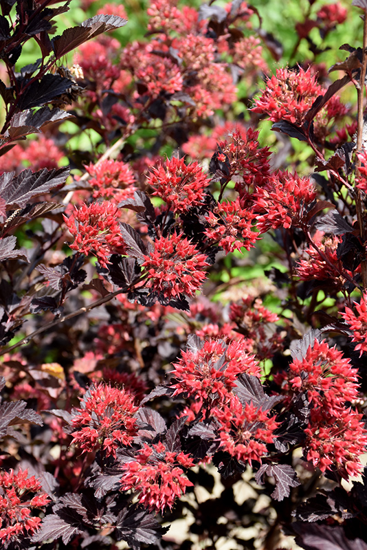 Center Glow Ninebark features showy clusters of white flowers at the ends of the branches from late spring to early summer, which emerge from distinctive pink flower buds. It has attractive burgundy deciduous foliage which emerges gold in spring. The serrated lobed leaves are highly ornamental and turn an outstanding scarlet in the fall. It features abundant showy red capsules from early to mid fall. The peeling tan bark adds an interesting dimension to the landscape.