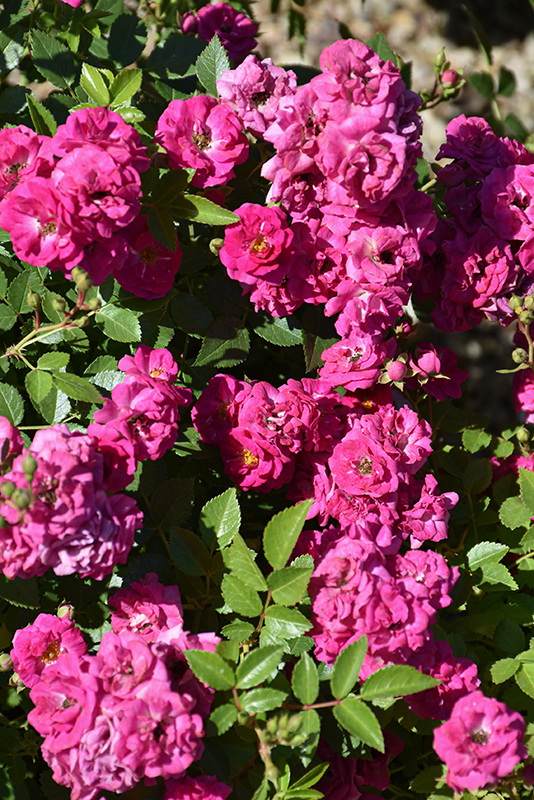 A lovely shrub variety featuring bushy plants of apple-green foliage crowned with striking deep pink to magenta blooms; mildly fragrant; wonderful in garden beds or massed in a low border; very disease resistant