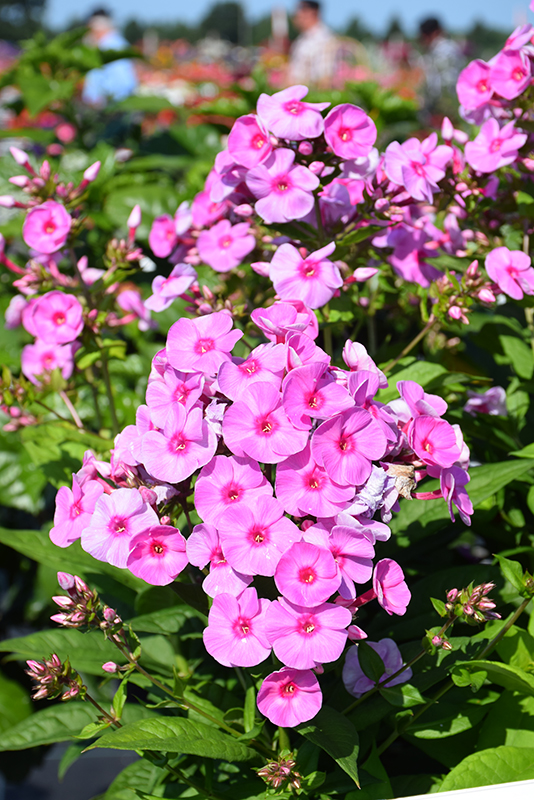This variety features large, well rounded panicles of bubblegum pink flowers with dark pink eyes; suitable for containers or filling out the middle of borders; excellent mildew resistance