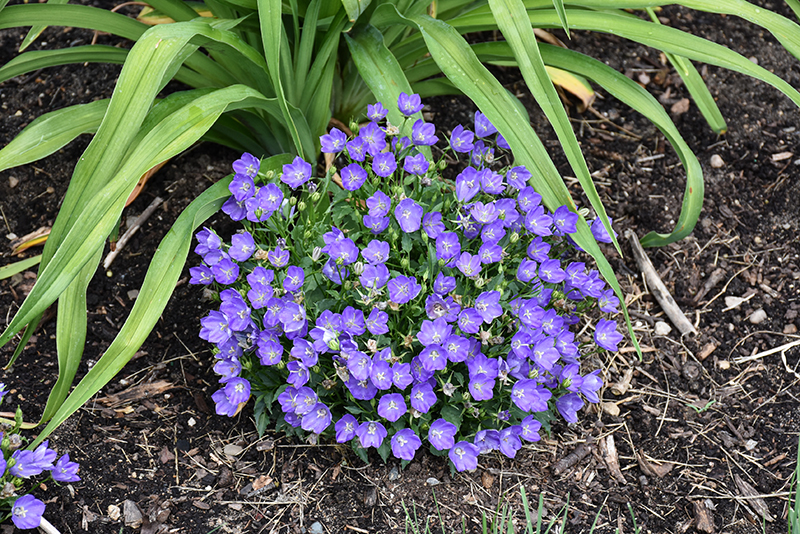 Mini Marvels™ Midnight Bellflower will grow to be only 6 inches tall at maturity, with a spread of 12 inches. Its foliage tends to remain low and dense right to the ground. It grows at a fast rate, and under ideal conditions can be expected to live for approximately 5 years. As an herbaceous perennial, this plant will usually die back to the crown each winter, and will regrow from the base each spring. Be careful not to disturb the crown in late winter when it may not be readily seen!