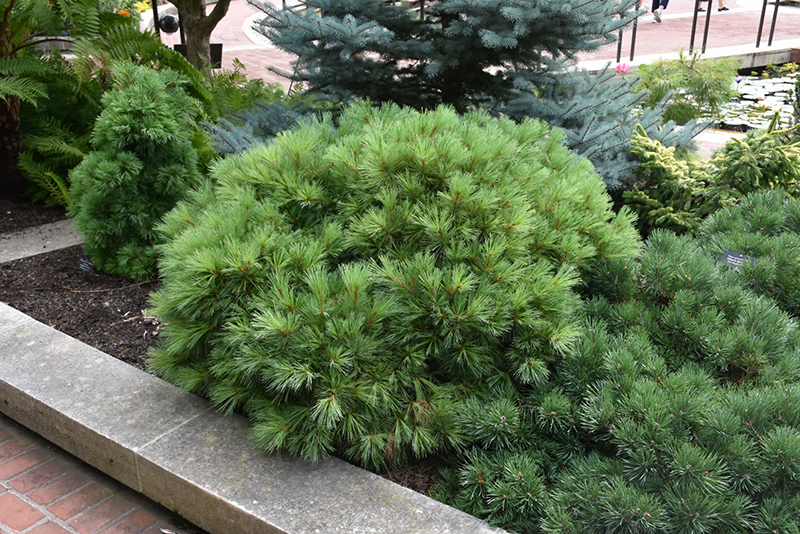Windswept White Pine will grow to be about 3 feet tall at maturity, with a spread of 4 feet. It tends to fill out right to the ground and therefore doesn't necessarily require facer plants in front. It grows at a slow rate, and under ideal conditions can be expected to live for 50 years or more.