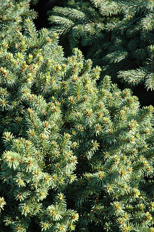 Needles on this unique mounding variety are longer and thicker than other dwarf cultivars and have a slight glaucous tint; prominent cinnamon colored stems and buds create a dramatic effect