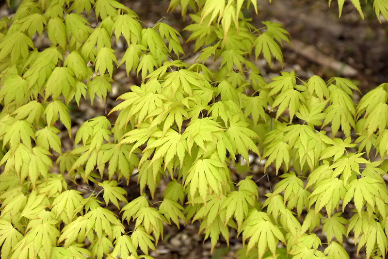 Orange Dream Japanese Maple is primarily valued in the landscape or garden for its ornamental upright and spreading habit of growth. It has attractive chartreuse foliage edged in orange which emerges orange in spring. The small lobed palmate leaves are highly ornamental and turn outstanding shades of orange and gold in the fall. The smooth green bark is extremely showy and adds significant winter interest.