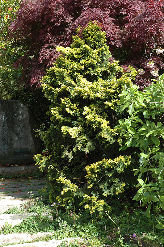 Verdon Dwarf Hinoki Falsecypress is a dwarf conifer which is primarily valued in the landscape or garden for its distinctively pyramidal habit of growth. It has attractive gold evergreen foliage. The scale-like sprays of foliage are highly ornamental and remain gold throughout the winter.