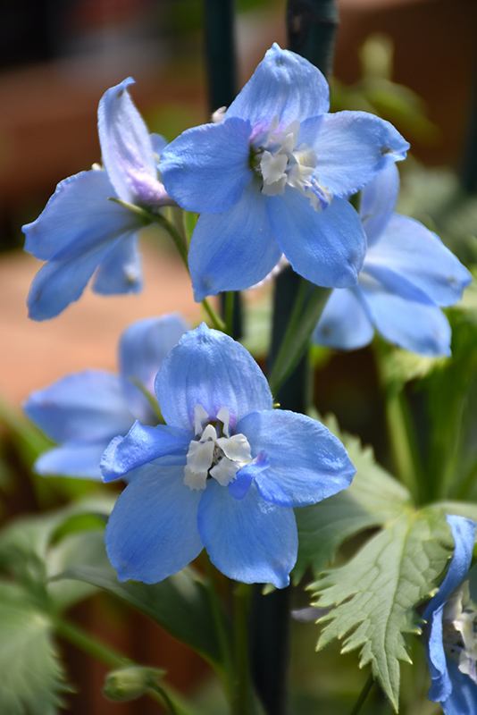 Magic Fountains Sky Blue Larkspur features bold spikes of semi-double powder blue flowers with white eyes rising above the foliage from early to mid summer. The flowers are excellent for cutting. Its deeply cut lobed leaves remain dark green in color throughout the season.