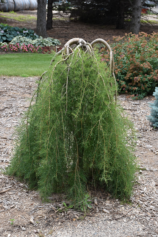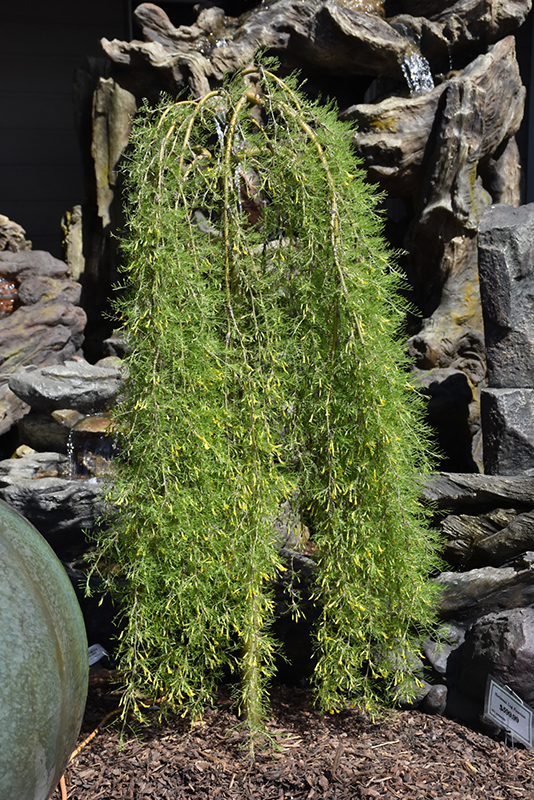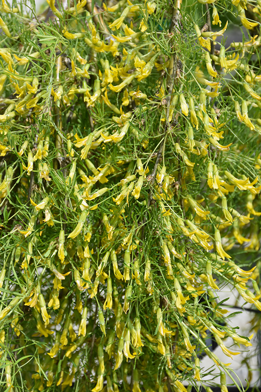 Walker Weeping Peashrub is primarily valued in the landscape or garden for its highly ornamental weeping form. It has yellow pea-like flowers hanging below the branches in mid spring. It has light green deciduous foliage. The deeply cut ferny pinnately compound leaves turn yellow in fall. The smooth olive green bark adds an interesting dimension to the landscape.
