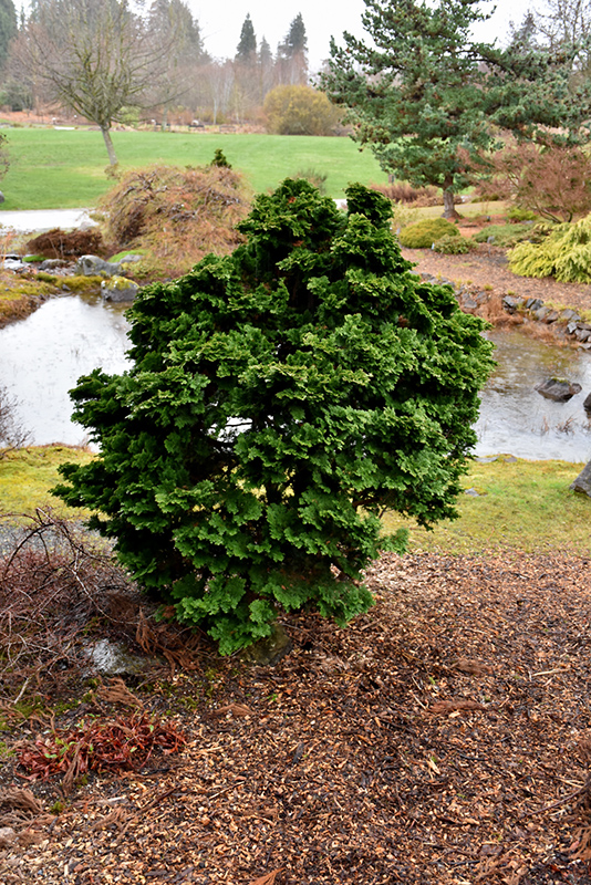 Dwarf Hinoki Falsecypress is a dwarf conifer which is primarily valued in the landscape or garden for its distinctively pyramidal habit of growth. It has dark green evergreen foliage. The scale-like sprays of foliage remain dark green throughout the winter.