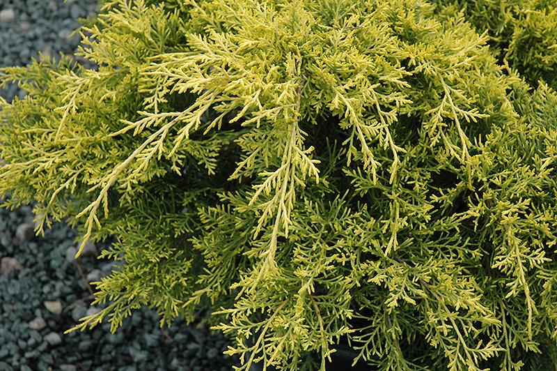 A stunning color accent landscape evergreen; wide spreading and sprawling in a superior yellow foliage that is considerably brighter than other hybrids; a superb groundcover or massing plant for color with true character of habit when mature