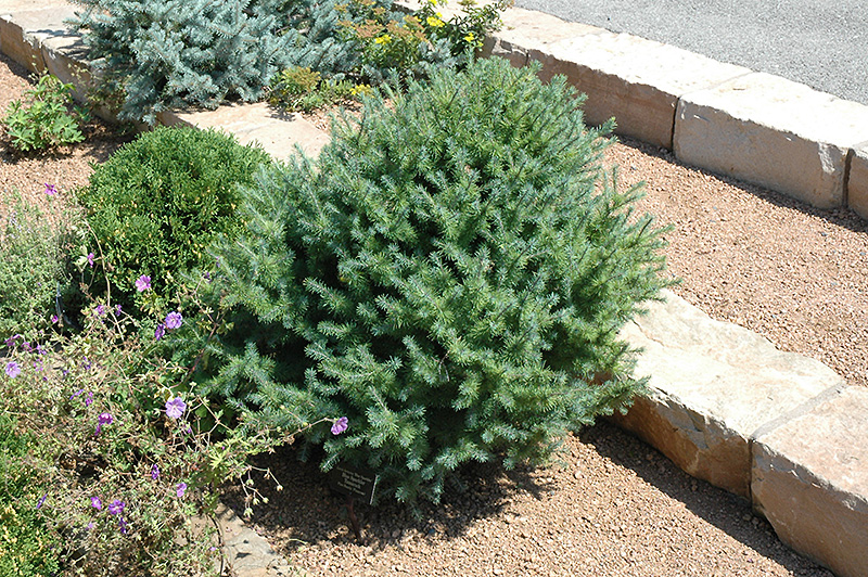 This attractive accent plant has blue needles displayed in tight circles giving the impression of a small blue burst; sometimes grafted on a standard giving it the look of a sparkler, otherwise an upright color accent shrub