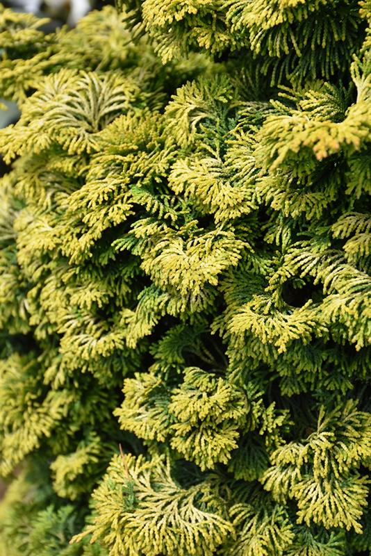 A very slow growing variety with scalloped green and golden foliage with a hint of rust; may reach only 3 feet at maturity with a roughly conical shape; a perfect choice for the residential landscape, the garden as an accent plant, or in containers