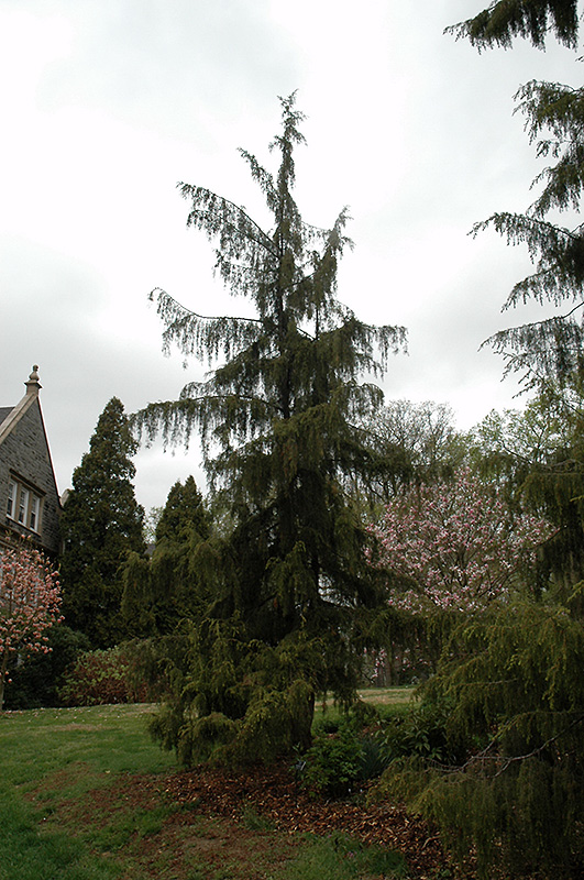 Graceful weeping branches of sharp green needles; flaking bark and ornamental berries; attractive broadly spreading shape; makes an excellent border accent or screen